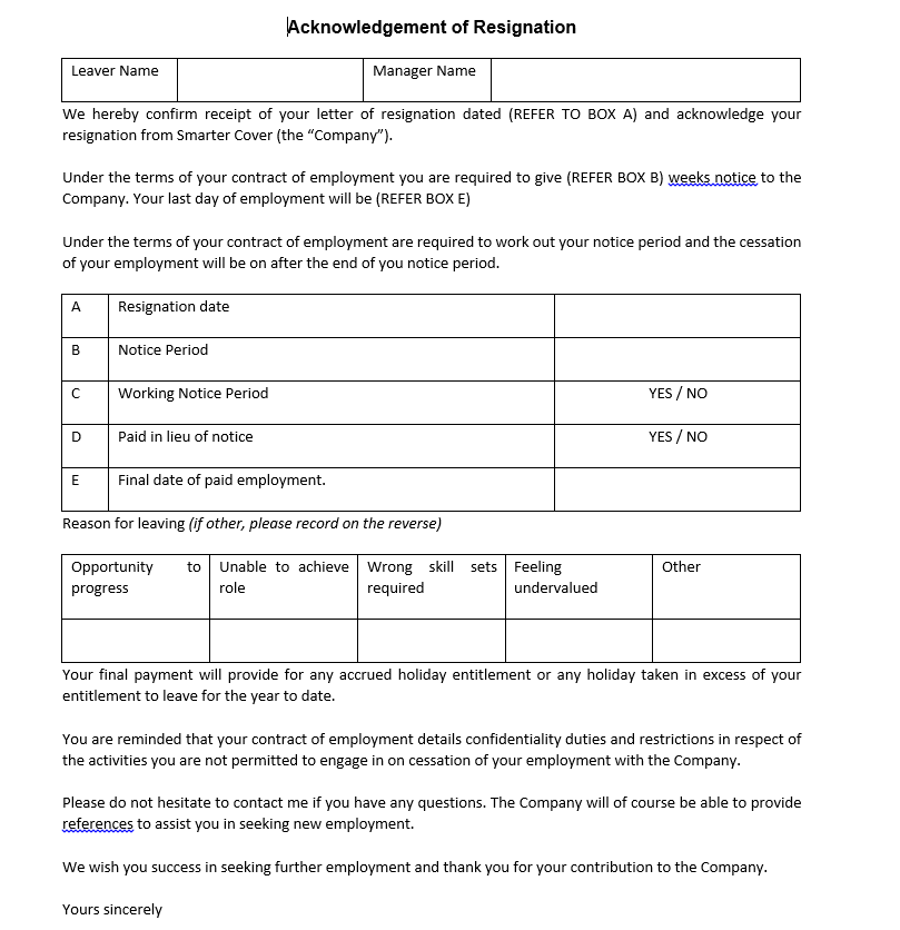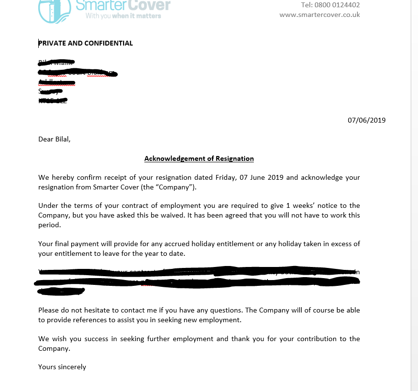 Regardless of who and why the employee is leaving is irrelevant, whilst processing their details correctly. Firstly, when an employee would like to resign, they will hand their notice to their manager who will inform HR. This what the notice letter looks like.