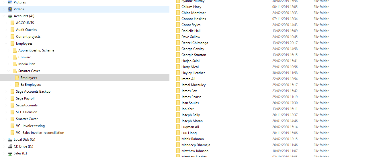 Finally, the last thing that needs to be completed is to move the employee's folder into the 'ex-employee's' folder. There documents will be kept as a record. Shown below, is where the employee's documents should be dragged to.