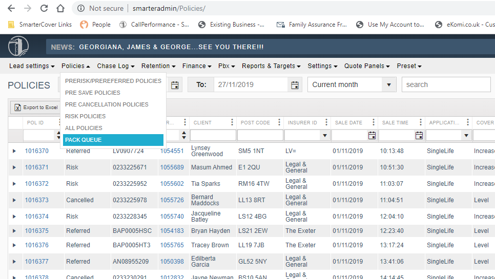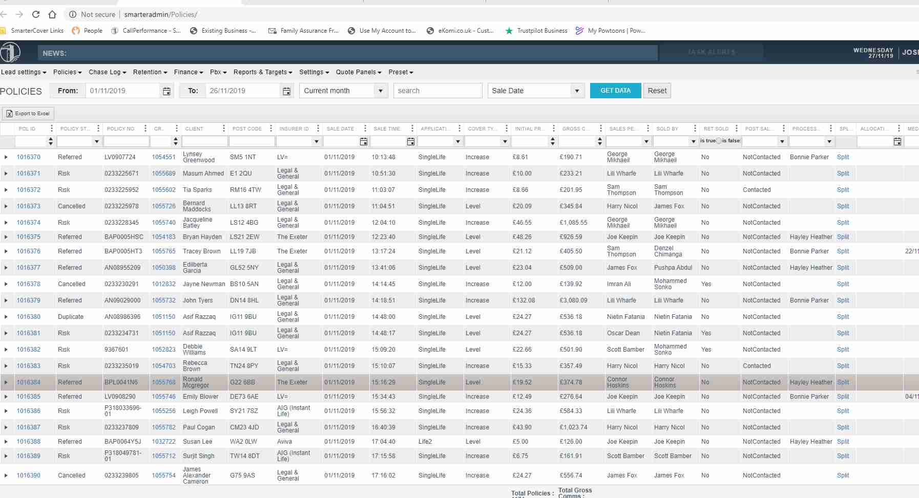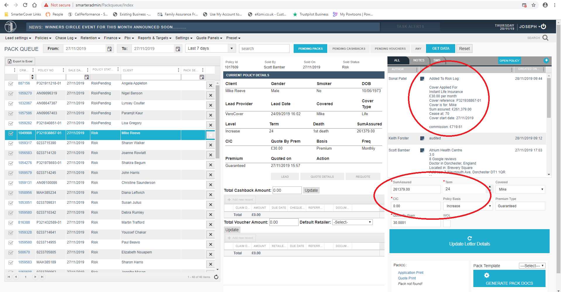 When you select a policy, the customer�s details will come up. You must scan the page and information very carefully making sure that the sum assured, term and monthly premium in the most recent notes match the details already displayed.