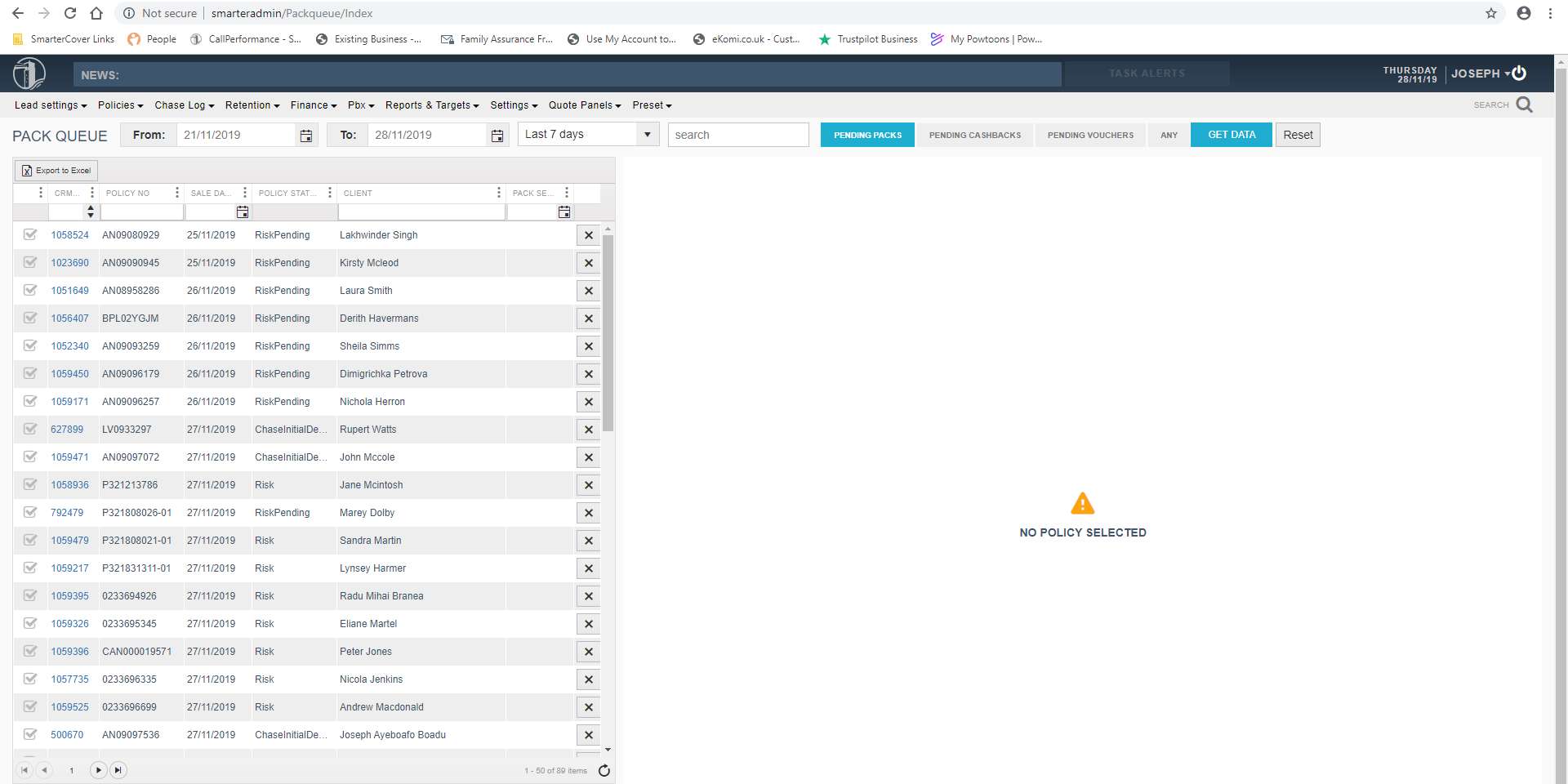 The policy status of the pack will either say �risk� or �referred� � These are the policies which must be printed off.