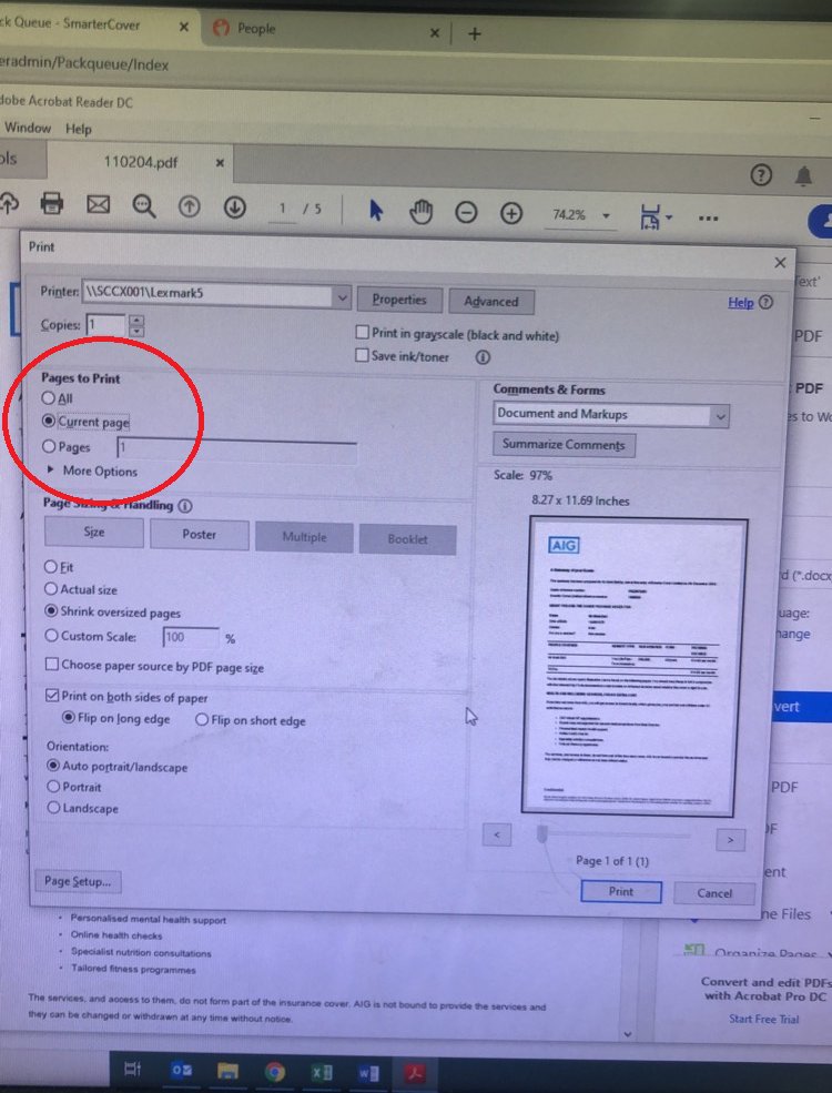After successfully printing the pack, you need to then click on the �quote print� button. All you need to do when printing this off is to only print the first page. You can change this as shown below.