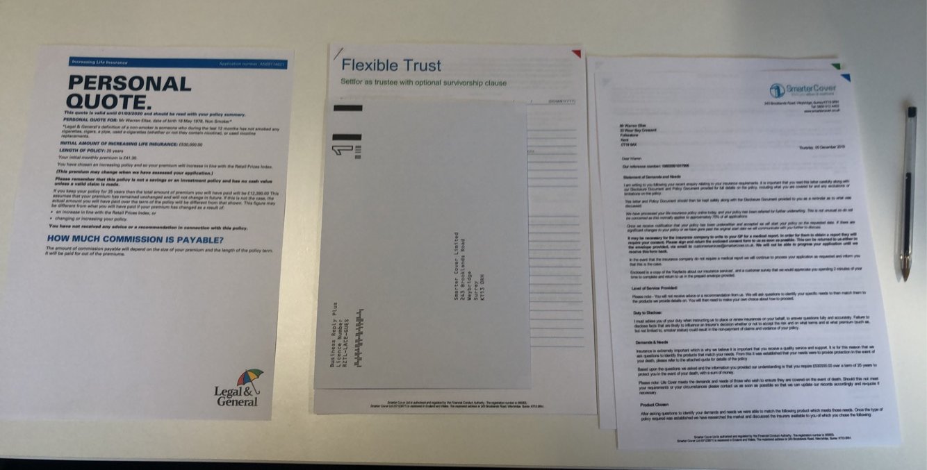 The packs contain vital information about the customer�s policy, their health and finances so it is very important that the customer gets sent all the right data. Packs will also contain a trust form which the customer will have to fill out. The pack also comes with a small pre-paid envelope which is for the trust form which is be sent back in by the customer.