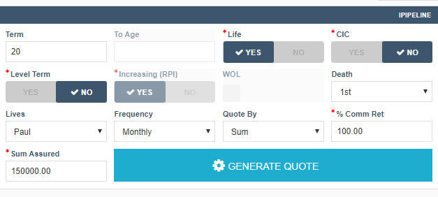 Where it says get quote generate the quote for the client for the same price and term the client has asked for. Below you will see a step by step guide on how to generate the quote.