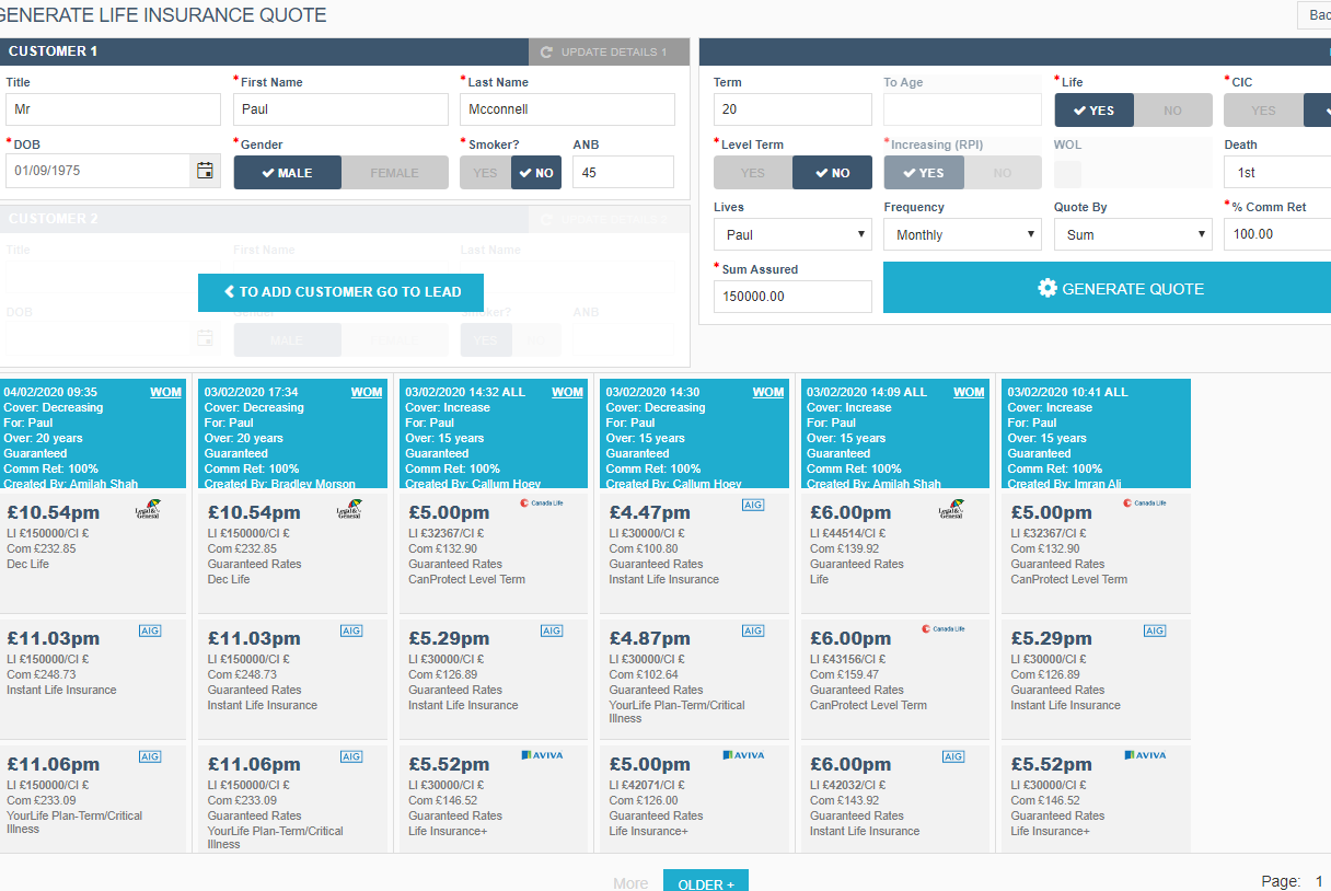 Click on the quote that has the insurer the client wants to go with. For example L&G, Aviva, Canada Life or AIG.