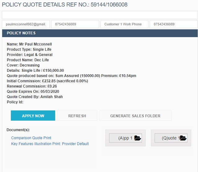 Once you complete that at the end it will show you a summary of the price and premiums just make sure it�s the same as what was sold to them on the CRM. It will also show if the application has been declined, referred or accepted.